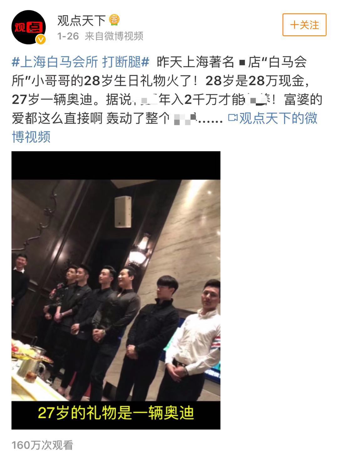 最近,上?!鞍遵R會所”小哥哥的28歲生日禮物火了!