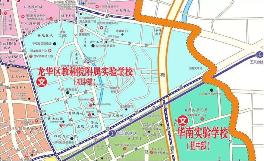 平南鐵路以南、梅龍路以西、民樂(lè)路以南、梅觀高速以西范圍。(與玉龍學(xué)校、深圳市外國(guó)語(yǔ)學(xué)校龍華學(xué)校共享學(xué)區(qū))