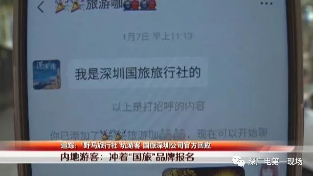 深圳市消費者委員會楊秀鋒:接到消費者投訴之后呢,我們跟消費者、市旅游局、旅游行業(yè)協(xié)會,還深圳國旅進行了溝通。深圳國旅確定這家消費者加入團的公司,是一家野馬旅行社。