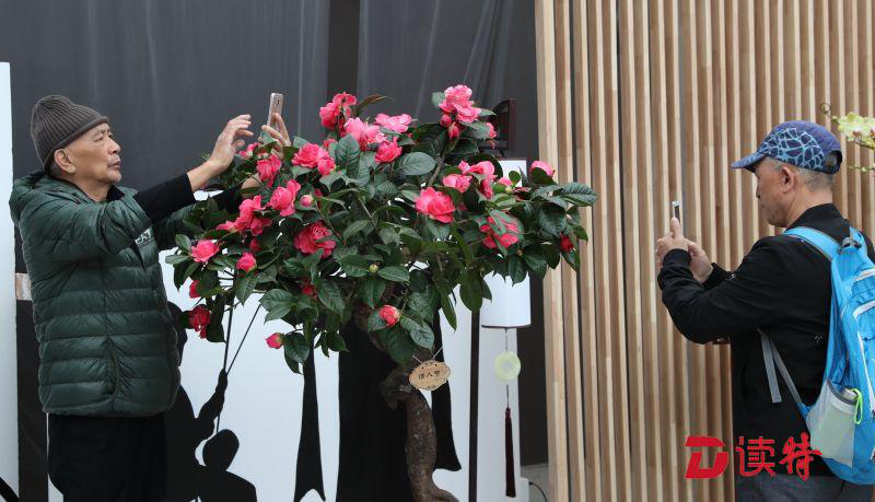 花卉館內(nèi)的室內(nèi)展區(qū)是此次茶花展的一大亮點(diǎn)。"佳境"、"夢境"、"意境"、"秘境"、"禪境"5個(gè)觀賞區(qū),營造出不同的茶花文化意境。其中"佳境"將擺放特色茶花盆栽,讓游人進(jìn)入到茶花營造出的簡潔雅致的意境中;"夢境"利用"古樹"結(jié)合展示茶花插花藝術(shù),打造了夢幻的展示空間;"意境"以茶花切花花藝作品為主,結(jié)合茶花本身的特性與中式元素,展示意境唯美、充滿古韻的茶花插花作品。"我最喜歡‘秘境’,茶花盆景和山水盆景配上中式花幾和屏風(fēng),是濃縮的雅致山水呀。"63歲的孟先生由衷贊賞,"這是以情調(diào)韻味取勝,太美了!"而他的老伴喬阿姨則最喜歡"禪境":"茶花盆景搭配中式鏤空屏風(fēng),簡直像一幅畫,水中還有倒影虛實(shí)結(jié)合,很有意境?。?/p>