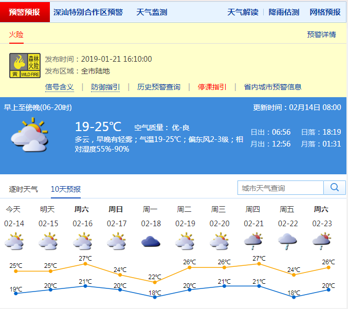 記者從深圳市氣象局了解到,14日深圳全市多云為主,氣溫19-25℃,相對(duì)濕度70%-90%,偏東風(fēng)2-3級(jí),能見度8-18公里。值得一提的是,今天距離深圳平均入冬日:1月13日已經(jīng)過(guò)去一個(gè)月了,今年直接入夏的可能性越來(lái)越大。