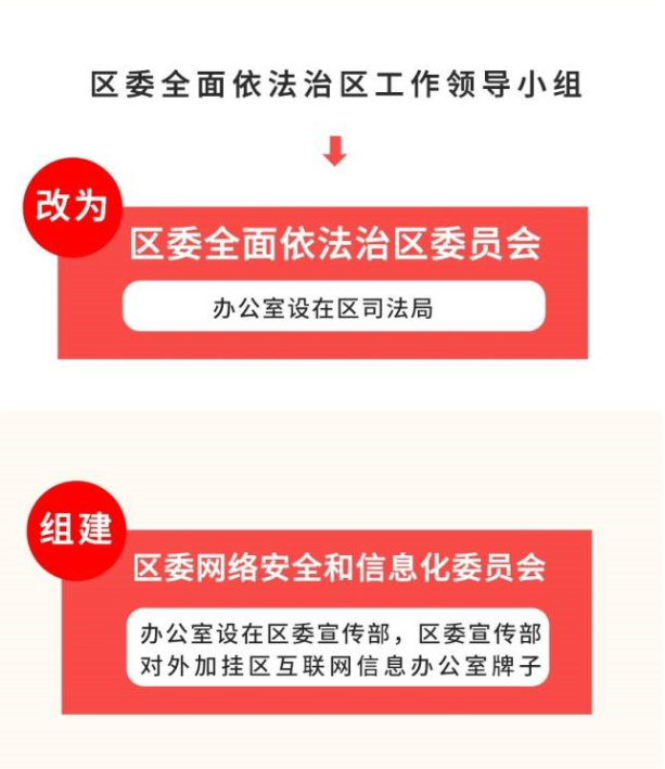 區(qū)委高度重視機構改革工作,認真貫徹落實黨的十九大和十九屆二中、三中全會精神,深入領會習近平總書記關于深化黨和國家機構改革的重要論述,及時研究部署龍華區(qū)機構改革工作,專門成立了區(qū)委深化機構改革工作領導小組。