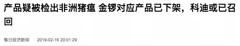 金鑼對應(yīng)產(chǎn)品已下架,科迪或已召回