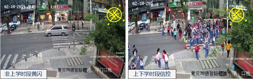 為了保障學(xué)生安全過街,深圳交警恢復(fù)黃貝/德智路口上下學(xué)時段信號燈管控模式,非上下學(xué)時段啟用黃閃控制模式。