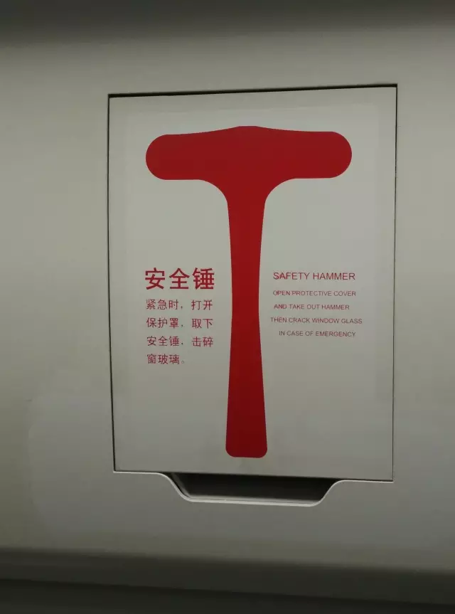 安全錘安裝于列車側頂上方的盒體內,每節(jié)車設有4個。當列車發(fā)生緊急情況時,乘客可打開保護罩取下安全錘,用錘子擊碎窗玻璃逃生。