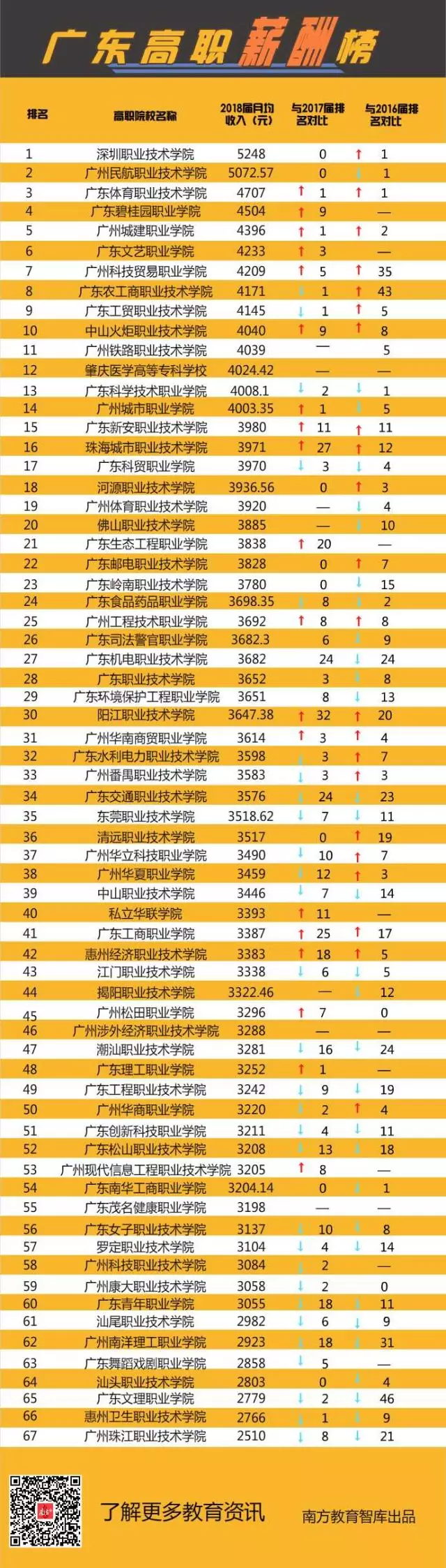 ▲廣東高職薪酬10強(qiáng),深職院、廣州民航平均月薪超5000元,超過(guò)不少本科院校。