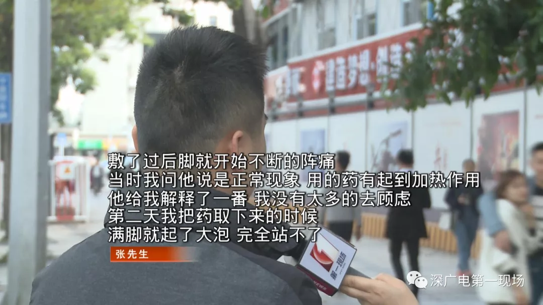 張先生的腿至今還沒有痊愈,腿上還有很明顯的起泡疤痕?,F(xiàn)在,每周三次去深圳市中醫(yī)院治療,這給他的工作造成不小的影響。
