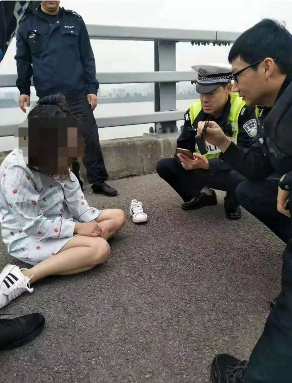 將女子從護(hù)欄上放下來(lái)后,為了防止女子再次做出過(guò)激舉動(dòng)民警們一邊形成“保護(hù)圈”,將其與高架護(hù)欄及過(guò)往車流隔開一邊不斷對(duì)女子進(jìn)行安撫交流。