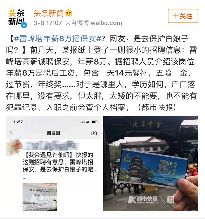 親,找工作嗎?聽說雷峰塔年薪8萬(wàn)招保安