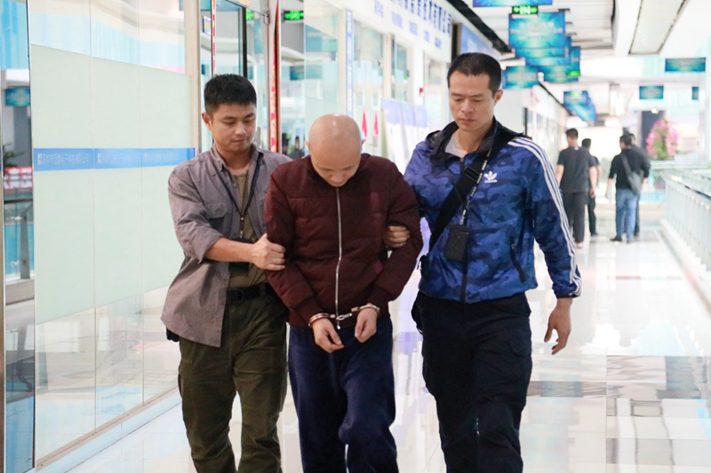 中午12時(shí)許,這個(gè)犯罪團(tuán)伙的一號(hào)犯罪嫌疑人胡某榮和二號(hào)犯罪嫌疑人郭某斌耷拉著腦袋,被幾名便衣民警押到了公司。