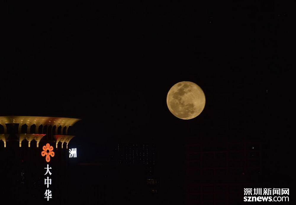 大中華樓頂,月亮出現(xiàn)(圖為二次曝光)