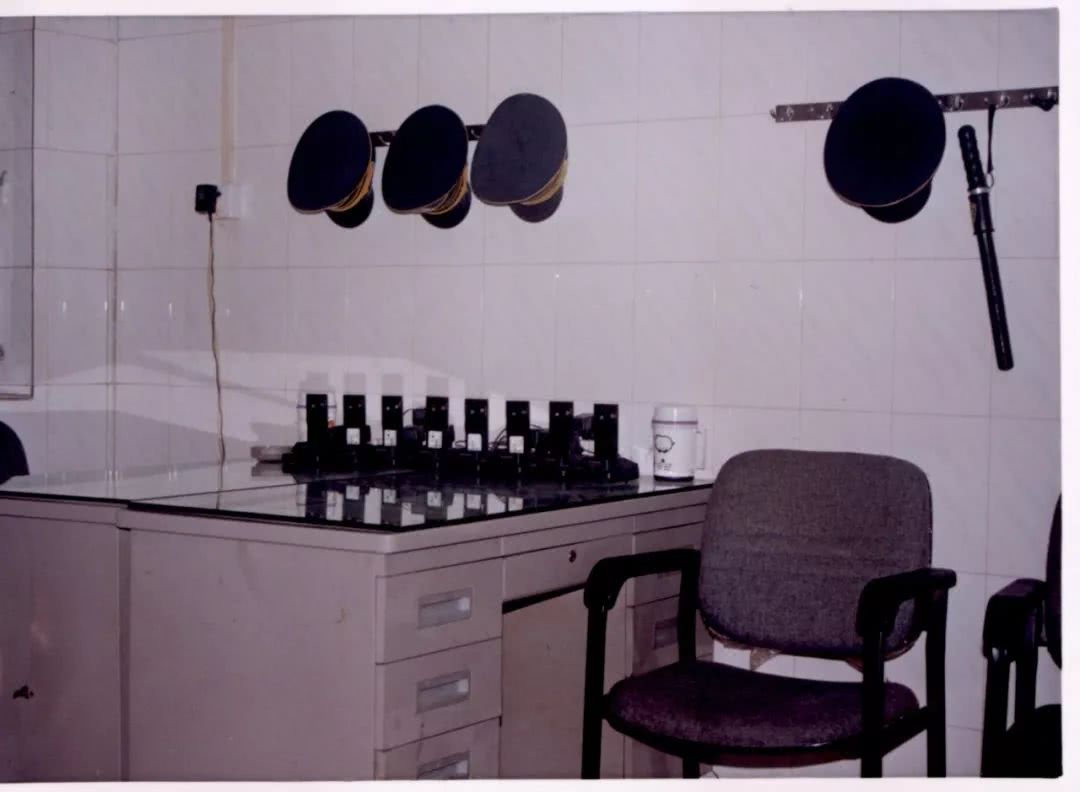 照片中,在水泥門樓的一側(cè)掛著一塊政府機關(guān)牌匾,白底黑字落有“深圳市公安局福田派出所”幾個大字。門樓上的五星紅旗熠熠生輝,透過門樓,內(nèi)部有個寬敞的小院,供巡邏車停放及日常操練,再往里走便是一幢3層樓高的辦公樓,辦公樓的中央懸掛一枚警徽,彰顯警隊的莊嚴(yán)。一樓是戶政室,一縷陽光透過窗戶灑進來,讓辦事的群眾感到溫暖,也給門欄上“堅持原則 方便群眾加強管理熱忱服務(wù)”16個字鍍上了金邊,這是福田派出所對轄區(qū)老百姓的堅定承諾。