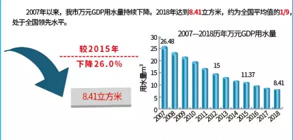 2、萬元GDP水耗由2010年的19.95立方米降至2018年的8.41立方米,萬元工業(yè)增加值用水量從14.15立方米降至5.22立方米,全市供水管網漏損率由2013年的12.72%降至2018年的10.66%。