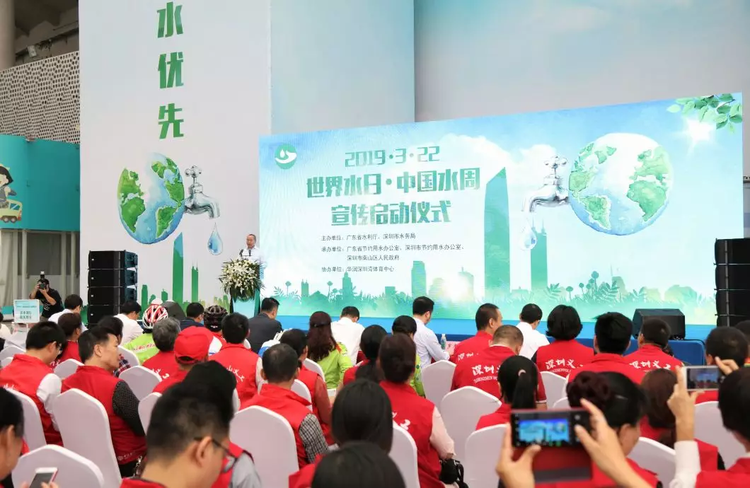 現場領導用取自于深圳灣體育中心大樹廣場收集回用的雨水,共同澆灌象征著綠色、希望的生命之樹,來正式啟動“世界水日”“中國水周”宣傳活動!