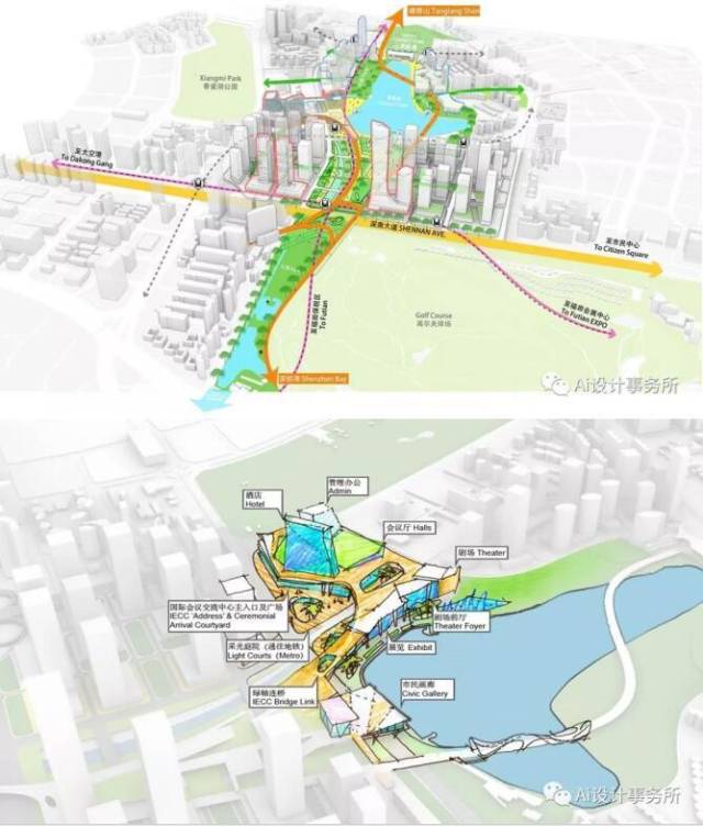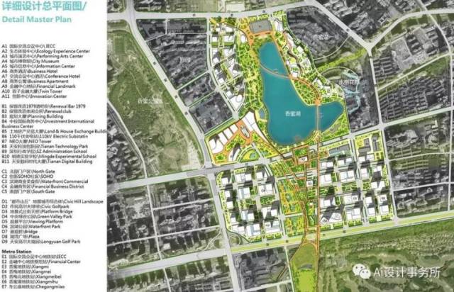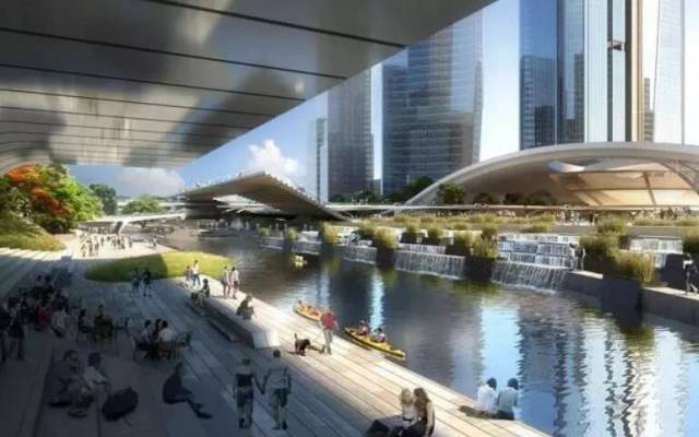 該方案中規(guī)劃了國(guó)際交流會(huì)議中心、城市演藝中心、城市博物館及雙子金融大廈等,以及地景式過(guò)街天橋、中央綠谷公園等。