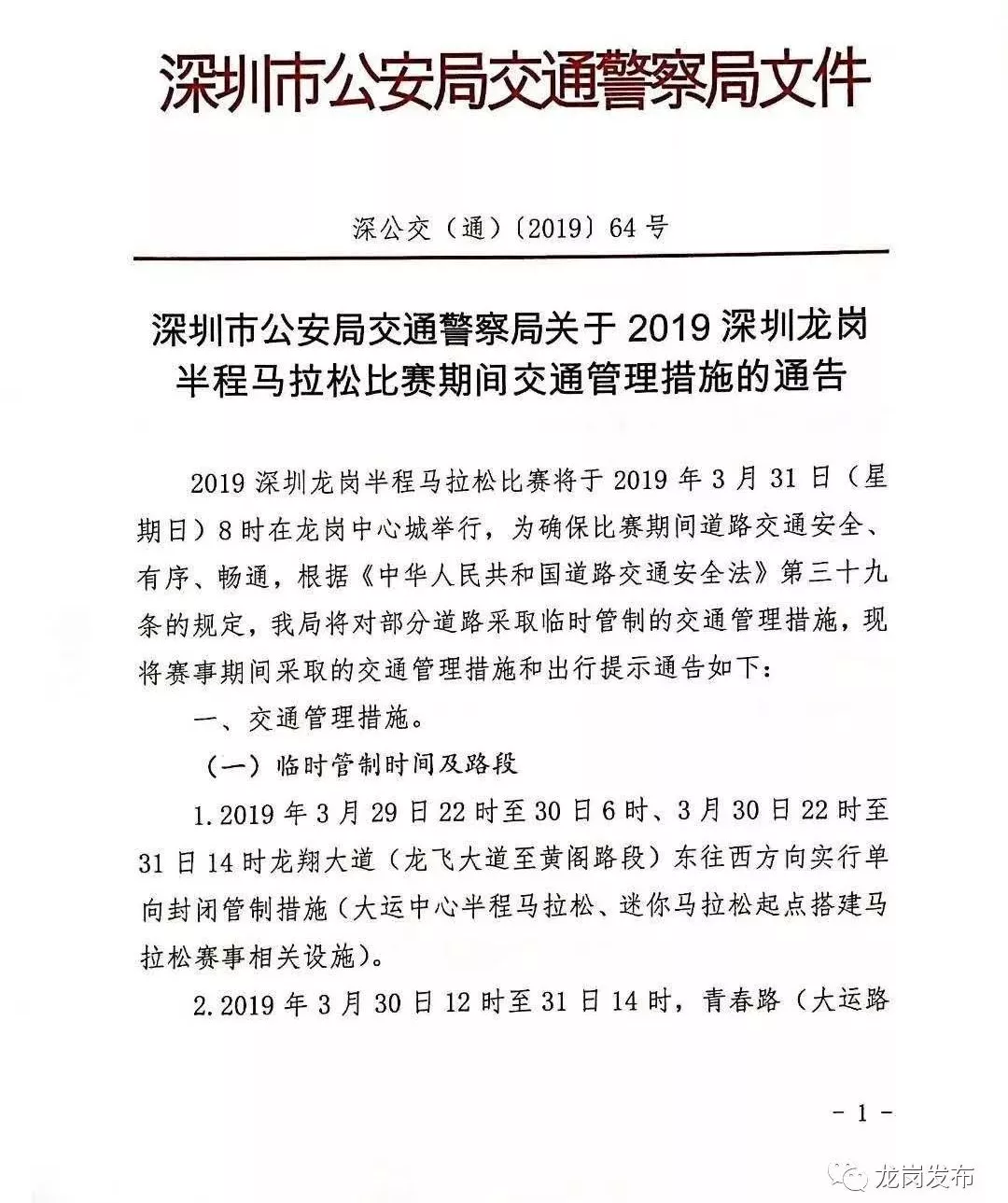 深圳新聞網(wǎng)2019年3月25日訊(記者 施冰冰)記者從“龍崗發(fā)布”微信公眾號了解到,3月31日,2019深圳龍崗半程馬拉松比賽即將鳴槍開跑,屆時深圳市公安局交通警察局將對龍崗部分路段實行交通管制,繞行攻略看這里!
