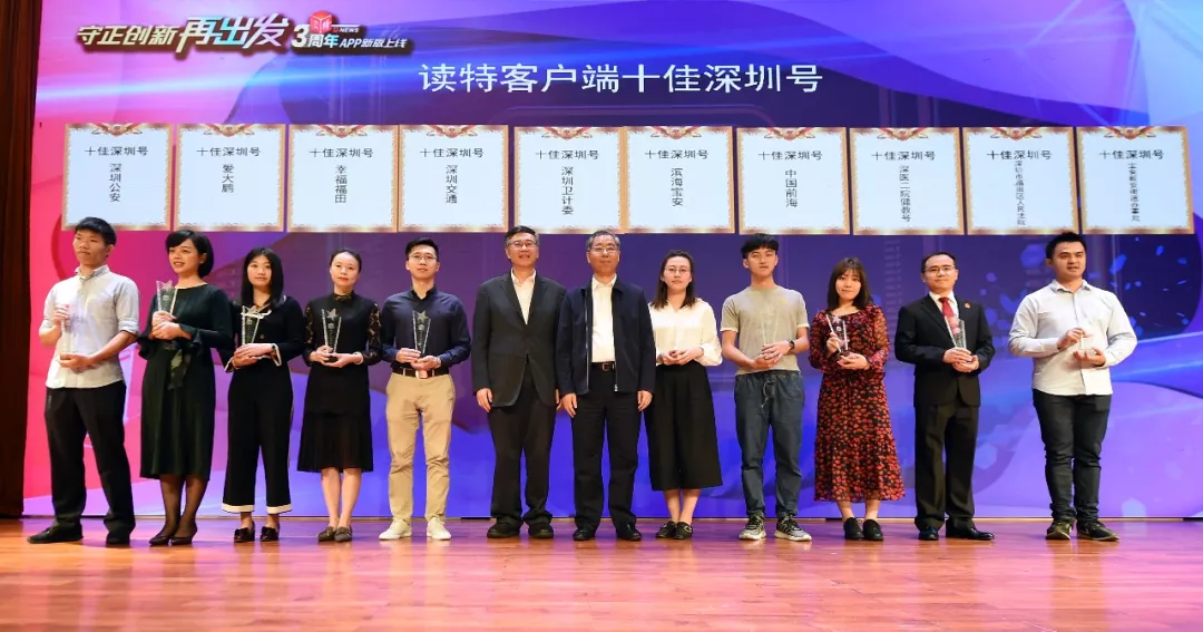 活動現(xiàn)場,根據(jù)發(fā)稿量、發(fā)稿質量、傳播力、影響力等綜合數(shù)據(jù)的評比分析,讀特客戶端評選出10佳入駐深圳號。