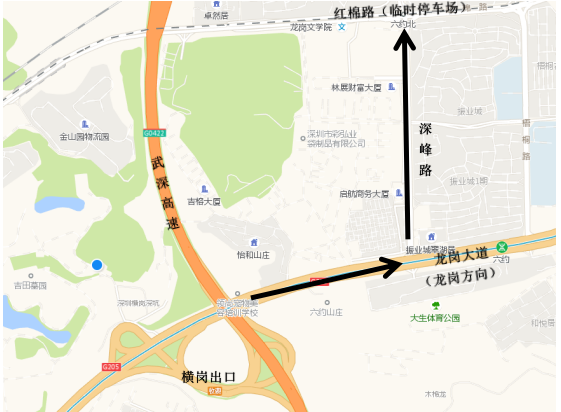 3、自龍崗出發(fā)路線(xiàn):往龍崗大道羅湖方向行駛,在深峰路路口右轉(zhuǎn)進(jìn)入,經(jīng)深峰路進(jìn)入紅棉路臨時(shí)停車(chē)場(chǎng),轉(zhuǎn)乘接駁大巴。