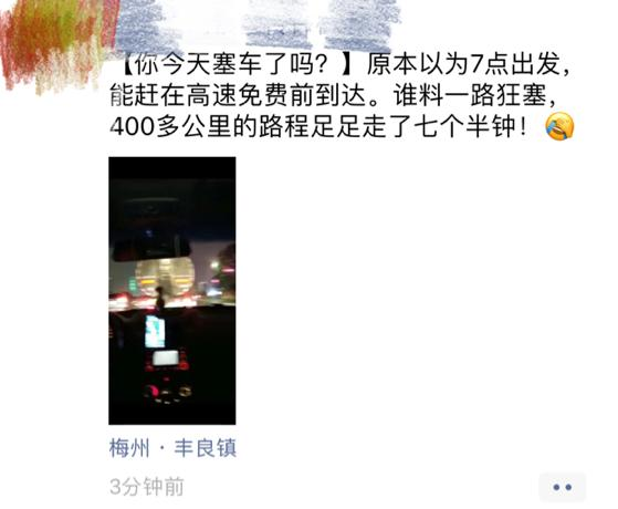 有坐大巴的朋友因為塞車時間遠超預(yù)期,遇上手機快沒電,心急不已,只能斷斷續(xù)續(xù)地開了又關(guān)機,以便與接他的家人保持聯(lián)系又留住最后一點電量。而家人也在當?shù)乜h城等了他四五個小時。
