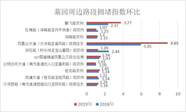 深圳市墓園周邊路段擁堵指數(shù)有升有降