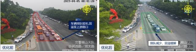 沙河西/同發(fā)路口優(yōu)化前后對比