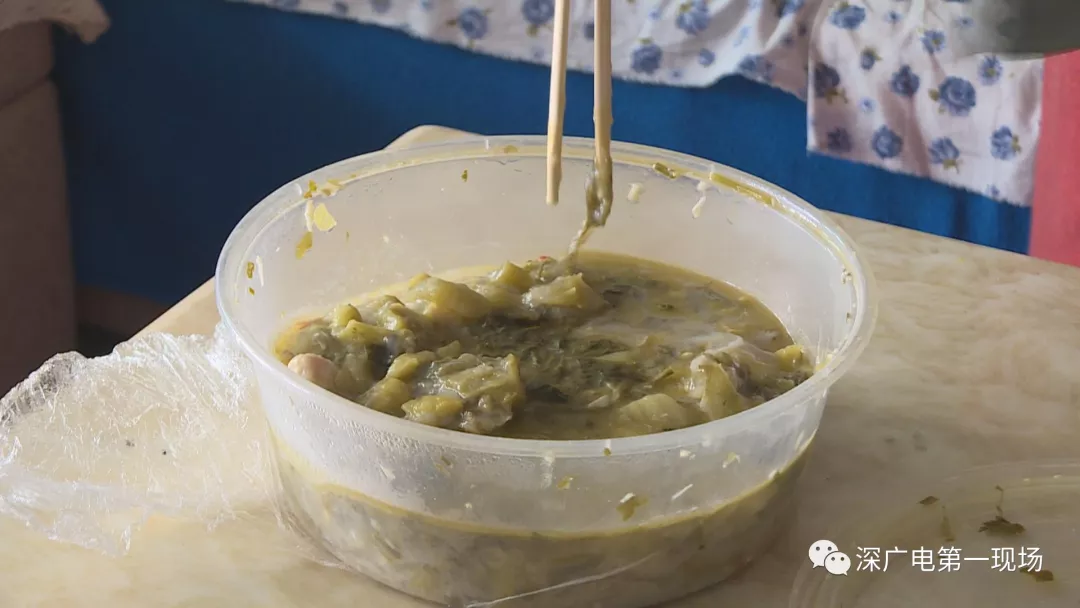 劉女士把那晚沒(méi)吃完的酸菜魚(yú)放在了冰箱里,希望當(dāng)證物提供給執(zhí)法人員。記者看到這份酸菜魚(yú)里。除了魚(yú)和酸菜還有粉條等配料。