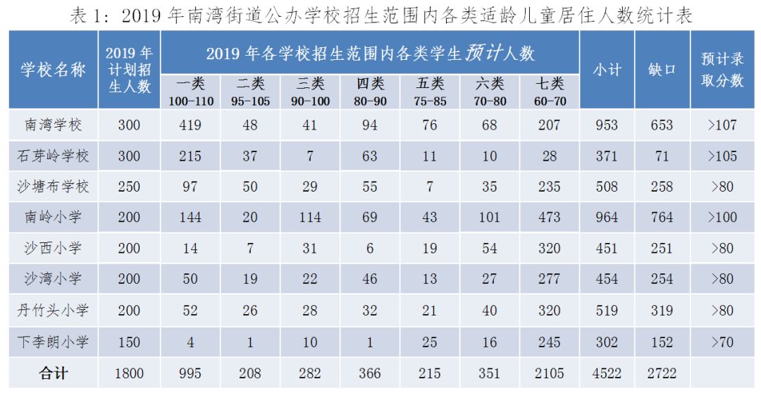 2019年南灣街道公辦學(xué)校招生范圍內(nèi)各類(lèi)適齡兒童居住人數(shù)統(tǒng)計(jì)表