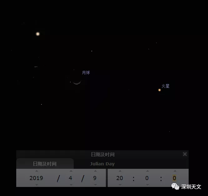 昨晚(4月9日),農(nóng)歷初五,機(jī)緣巧合,彎彎的月亮將從亮恒星畢宿五和大行星火星的中間路過(guò)。三者相聚在一起,形成“雙星伴月”的有趣天象。更有趣的是,三者擺成了一張笑臉的模樣:左上方的畢宿五為左眼睛,右方的火星為右眼睛,中間的月亮為嘴巴。
