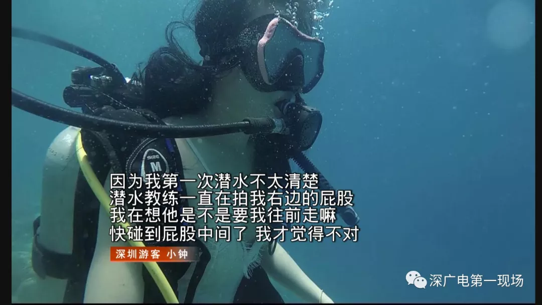 深廣電第一現(xiàn)場2019年4月11日訊 近幾年,越來越多深圳市民喜歡到東南亞海島旅游,而學(xué)潛水、探索海底世界也逐漸成為了一項熱門運動,就算你還沒有體驗過想必也一定聽說過啦!不過,最近有市民跟我們報料她們在馬來西亞潛水時遭遇了水下“色狼”!不僅被揩了油而且還不知道怎么處理!