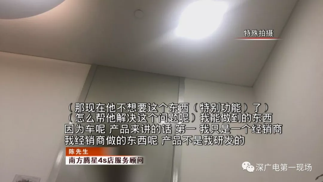 今天下午,記者跟著楊先生再次來(lái)到了南方騰星4s店,售后經(jīng)理陳先生表示,車輛自動(dòng)開(kāi)啟天窗的換氣功能,是這輛車的一個(gè)特別功能,對(duì)于給客戶帶來(lái)的不便,這位工作人員卻始終無(wú)法解釋清楚。