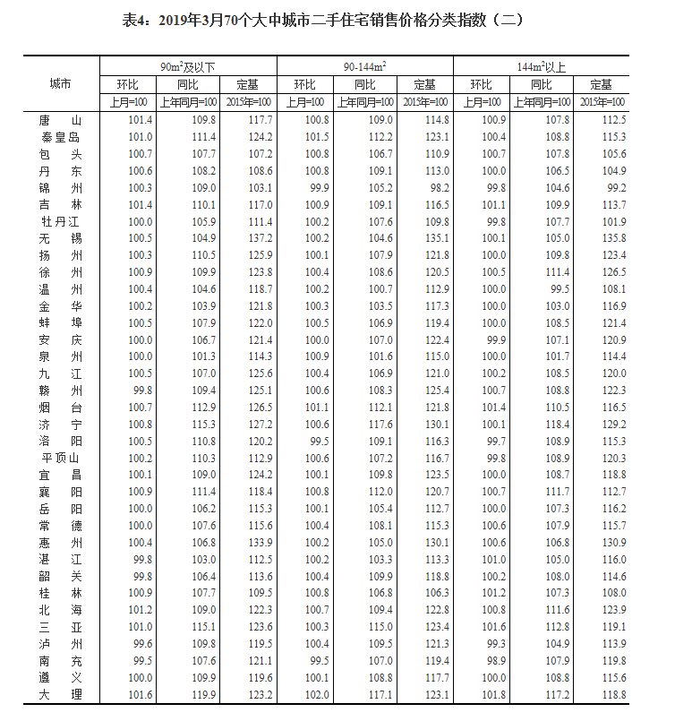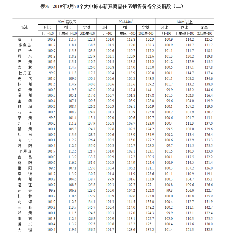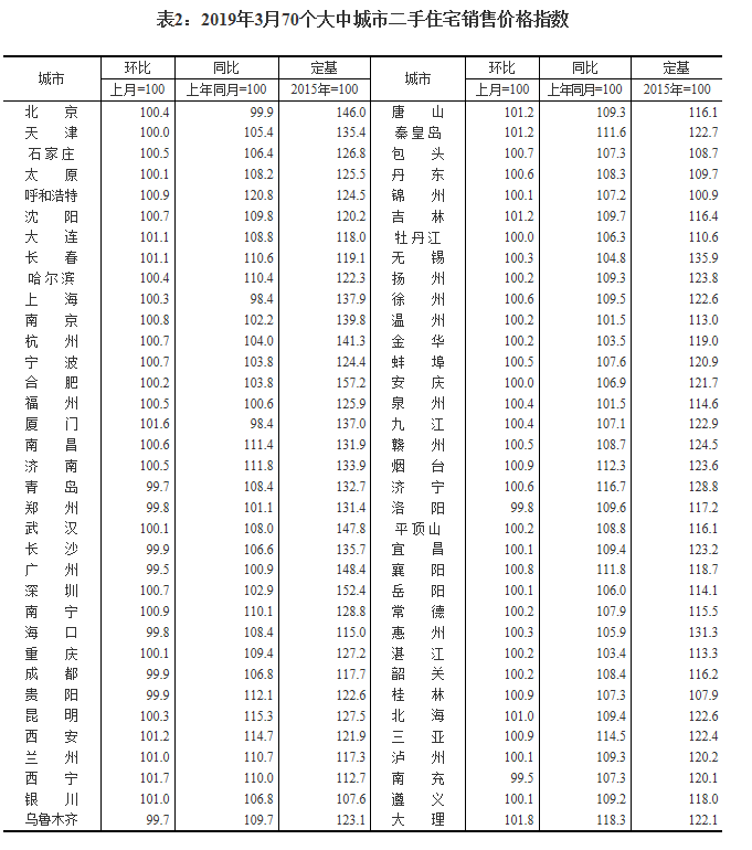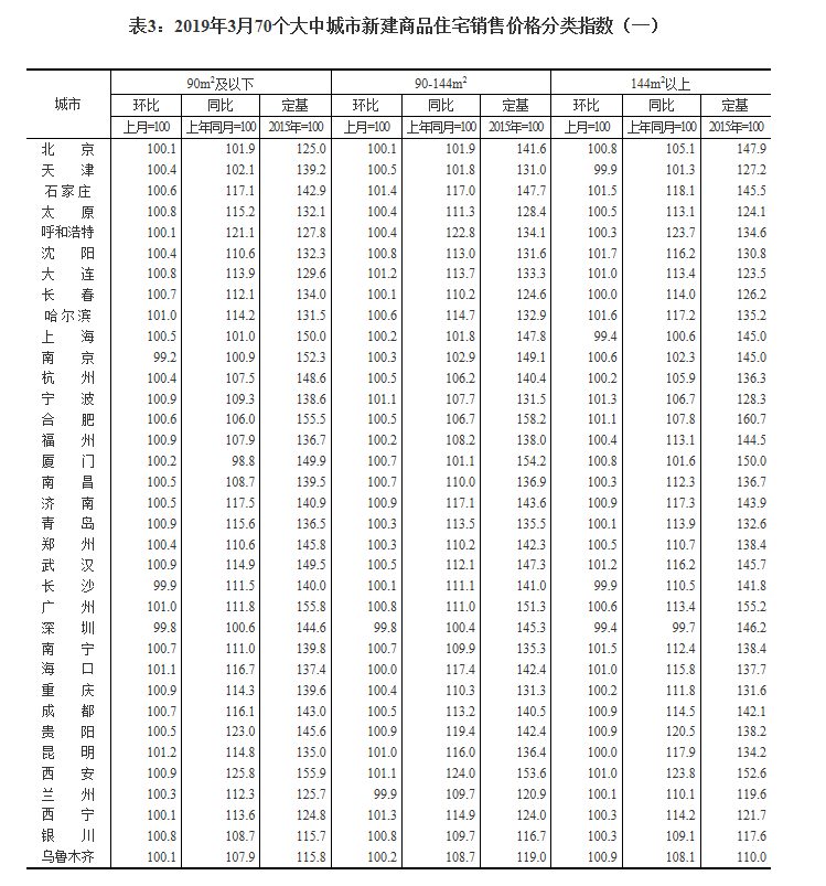 2019年3月份70個(gè)大中城市商品住宅銷(xiāo)售價(jià)格變動(dòng)情況