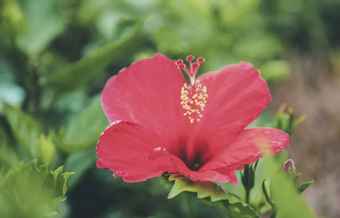除了觀賞,朱槿的花蜜還可食用,初開的朱槿,去掉底部的花萼,便可以吮吸到甜甜的花蜜。記得小時候也曾嘗過,甜蜜的滋味還留在記憶里。