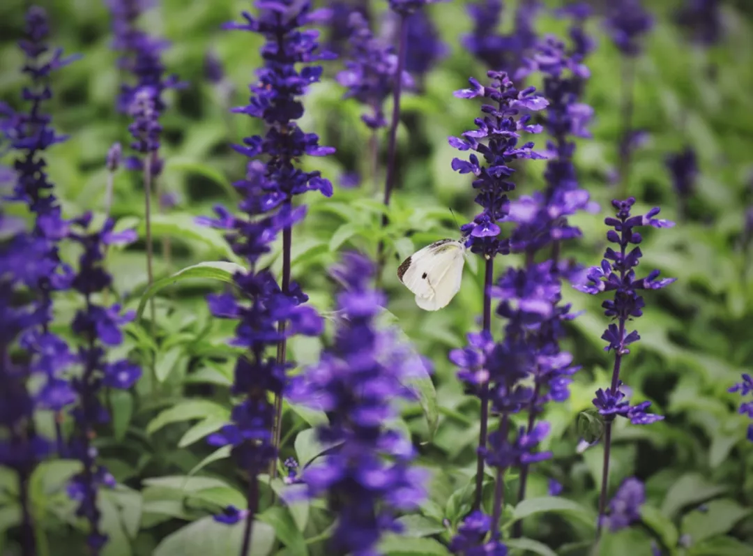 藍花鼠尾草清幽典雅,適合成片種植于花壇作為景觀,在寶安四季公園內就有許多。
