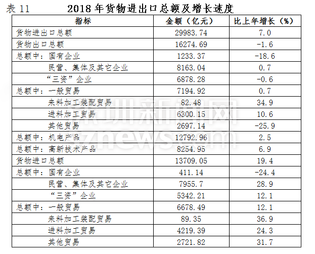 全年貨物進出口總額29983.74億元,比上年增長7.0%。其中出口總額16274.69億元,下降1.6%;進口總額13709.05億元,增長19.4%。出口總額連續(xù)二十六年居內地大中城市首位。