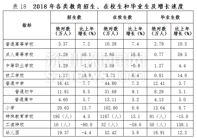 深圳新聞網2019年4月19日訊(記者 劉夢婷 通訊員 胡雪濤)4月19日,記者從深圳市統(tǒng)計局獲悉,深圳市2018國民經濟與社會發(fā)展統(tǒng)計公報出爐:全市實現(xiàn)地區(qū)生產總值24221.98億元,比上年增長7.6%,常住人口達1302.66萬人。人均可支配收入57543.60元,居民人均消費支出40535.02元。總體來看,2018年深圳經濟運行穩(wěn)健,主要經濟指標表現(xiàn)良好,高質量發(fā)展扎實推進。