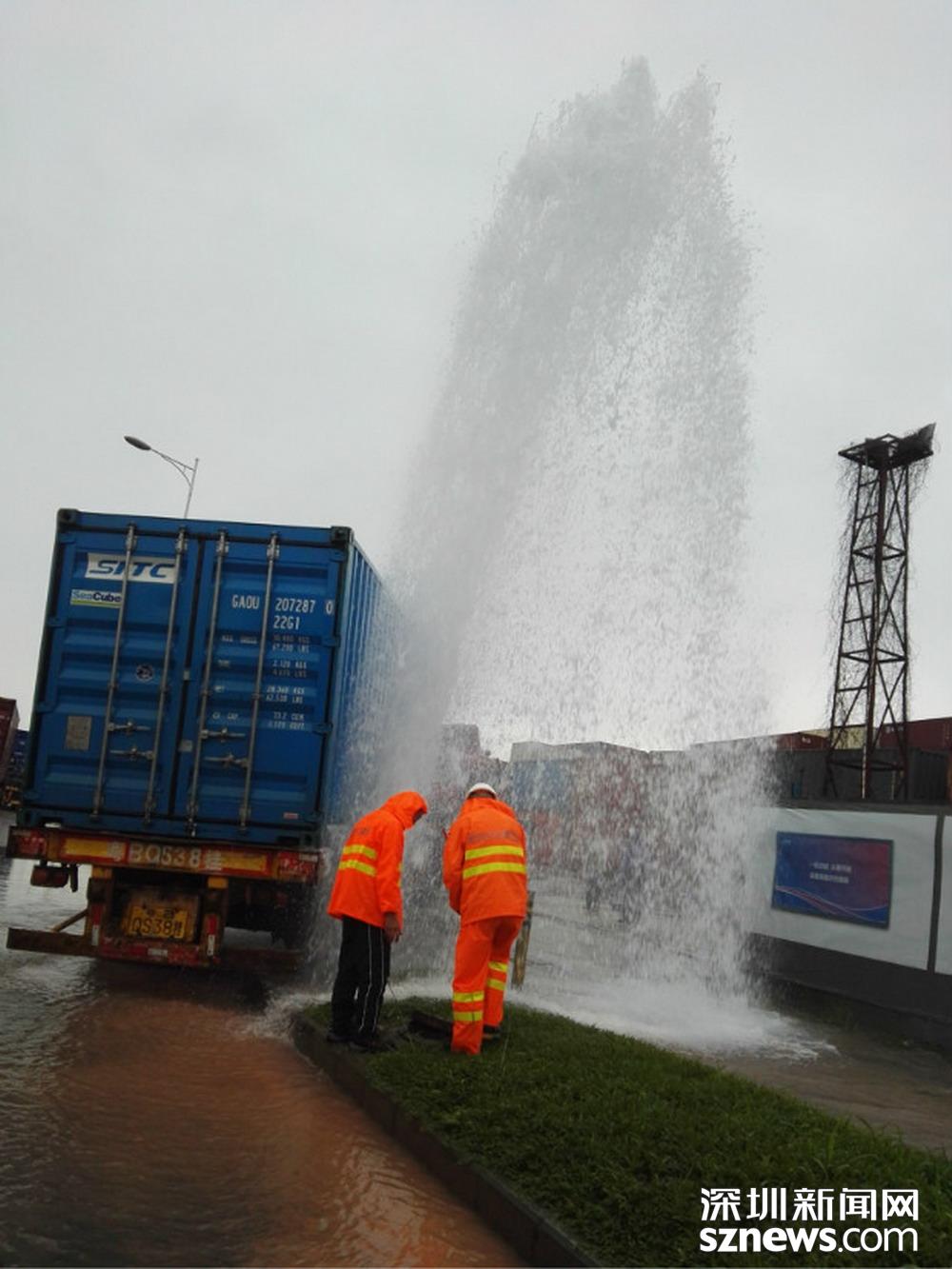 航海路(鹽港堆場)旁消火栓被大貨車撞斷,前海分公司工作人員立即出動,及時(shí)搶修完畢