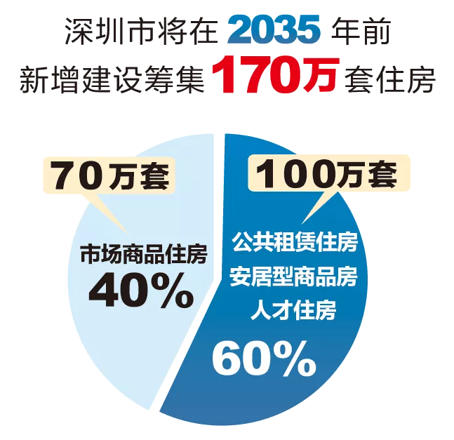 市住建局相關(guān)負(fù)責(zé)人介紹,2018年8月,市政府出臺(tái)了《關(guān)于深化住房制度改革加快建立多主體供給多渠道保障租購并舉的住房供應(yīng)與保障體系的意見》(以下簡(jiǎn)稱“主文件”)。新時(shí)代,深圳市將針對(duì)不同收入水平的居民和專業(yè)人才等各類群體,著力構(gòu)建多層次、差異化、全覆蓋的住房供應(yīng)與保障體系,努力實(shí)現(xiàn)全體市民住有所居?!爸魑募碧岢錾钲谑袑⒃?035年前新增建設(shè)籌集170萬套住房,其中:市場(chǎng)商品住房70萬套,占40%左右;公租房、安居型商品房和人才住房共100萬套,占60%左右。