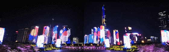 樓體的燈光和音樂(lè)同步登場(chǎng)