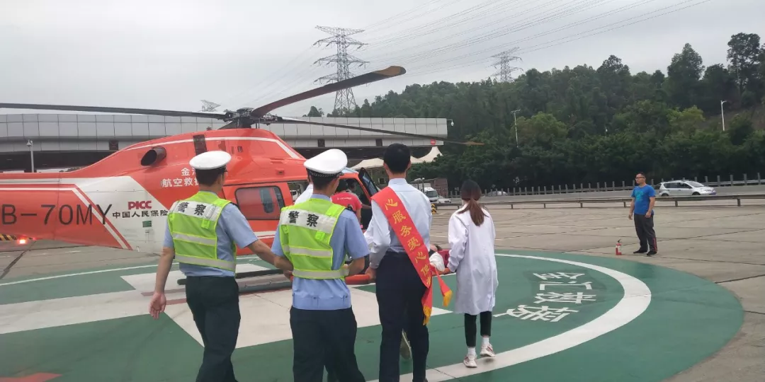 此時正值五一假期,道路擁堵,病患急需入院做進一步觀察,現(xiàn)場交警聯(lián)合金匯通航立刻啟動航空救援機制,將傷者送上救援直升機立刻送往醫(yī)院救治,11時49分從荷坳收費站起飛,12時03分到達南方醫(yī)科大學(xué)深圳醫(yī)院,原本1個半小時的車程,僅用14分鐘就將傷員送至醫(yī)院。