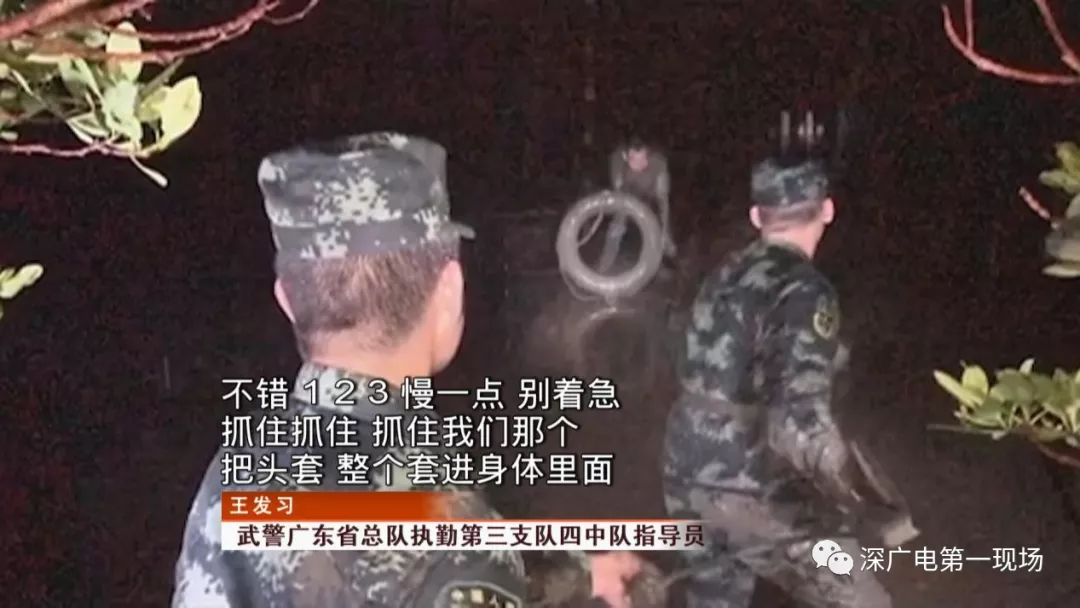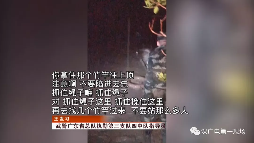 由于深圳灣海水退潮后淤泥深淺不一,直接下海救人非但沒把握,還是魯莽行為,在觀察現(xiàn)場情況,并對救援進(jìn)行科學(xué)研判后,武警官兵們通過拋投救生圈進(jìn)行救援。