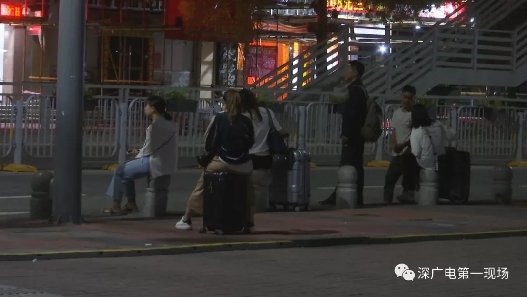 凌晨3點半,記者又來到了皇崗口岸,因為皇崗口岸是24小時通關(guān),所以還是有零零散散的旅客過關(guān)回到深圳。在現(xiàn)場,一些拉客人員站成一排,不停詢問走出關(guān)口的旅客,前往何處。