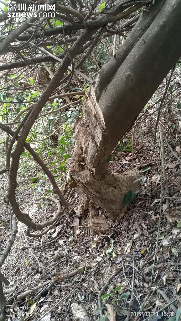 該網(wǎng)友提及的應(yīng)人石村位于深圳石巖,從地圖上看,其“后山”與羊臺(tái)山森林公園連為一體,是附近居民閑暇時(shí)度假踏青的重要選擇。據(jù)了解,網(wǎng)友“詩(shī)奴L”于今年3月中旬上山游玩,游玩途中發(fā)現(xiàn)原本茂盛的野生沉香樹(shù)大多遭人砍伐?!安环ǚ肿痈F盡一切手段,用鉆、削、劈、鋸等來(lái)對(duì)沉香樹(shù)進(jìn)行摧殘,這簡(jiǎn)直是屠殺式的洗劫!”該網(wǎng)友表示,看到這么多野生沉香樹(shù)被殘暴砍伐,真地讓人很氣憤。