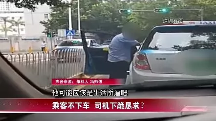 行駛到一個(gè)紅綠燈路口時(shí),的哥突然停車并開(kāi)門(mén)跪下,對(duì)著該名乘客說(shuō):“我給你跪下,我不走了,我認(rèn)輸”