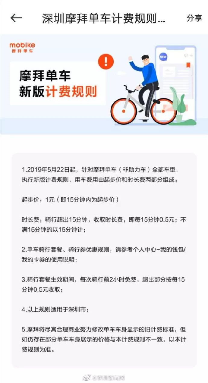 ①摩拜宣布從昨日起在深圳實(shí)行新的收費(fèi)標(biāo)準(zhǔn)。按照新的收費(fèi)標(biāo)準(zhǔn),15分鐘以?xún)?nèi)短時(shí)騎行用戶(hù)基本不受影響,而騎行1小時(shí)的費(fèi)用為2.5元,較目前增加0.5元。