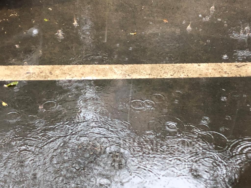 17時(shí)左右,松崗街道下起了陣雨。(記者 邵媛媛 攝)