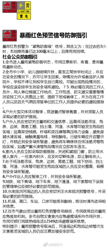 暴雨紅色預(yù)警信號防御指引