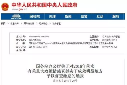國務院辦公廳近日印發(fā)通報,對2018年落實重大政策措施真抓實干、取得明顯成效的24個?。▍^(qū)、市)、80個市(州)、120個縣(市、區(qū)、旗)等予以督查激勵,相應采取30項獎勵支持措施。