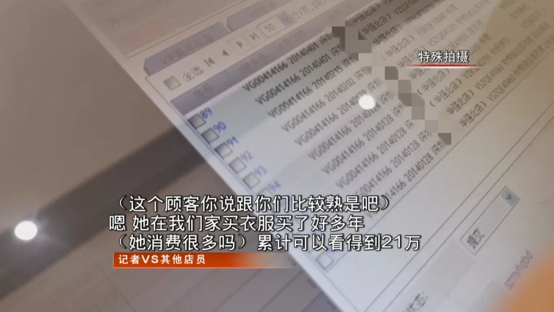 記者來(lái)到李小姐所在的女裝專柜了解情況。這個(gè)牌子衣服的標(biāo)價(jià),目前夏裝單價(jià)在2000-5000元,李小姐說(shuō)秋冬裝單件4000-7000元左右,屬于高端服裝品牌,當(dāng)時(shí)店里的一位熟客顏女士,選了11件秋冬裝,總價(jià)4萬(wàn)3千多元。