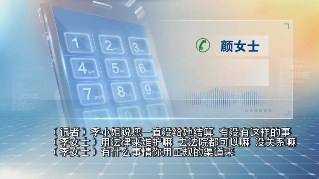 隨后記者撥通顏女士電話,記者表明身份后,試圖向顏女士核實(shí),李小姐反映的墊付4萬(wàn)多元貨款未歸還的問(wèn)題。