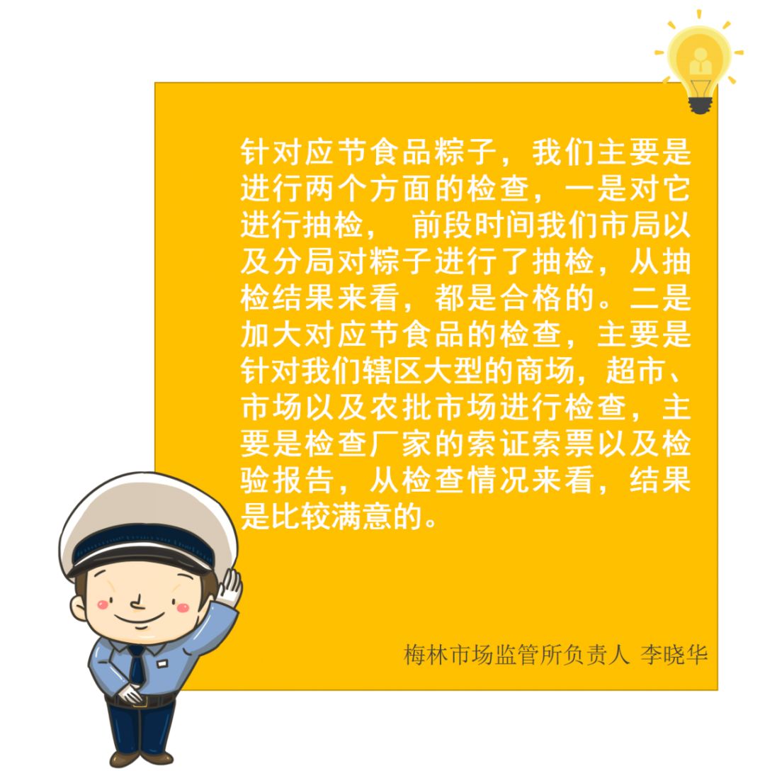 一年一度端午“粽”動員時刻到! 現(xiàn)在是不是想品嘗粽子的美味了? 肉粽肥瘦恰當(dāng)?shù)娜澫?/p> 蛋黃粽蛋黃留油的鮮潤 白粽沾綿糖的甜醇...... 于是總會來一場 甜咸粽黨battle 而有職業(yè)病的食安君只想關(guān)注安不安全 先關(guān)注下本期的【食安周報】 2019年食品安全抽樣檢驗情況通報 (第二十一期) 本次共抽檢生產(chǎn)、流通、餐飲環(huán)節(jié)應(yīng)節(jié)食品(粽子)200批次,涉及經(jīng)營主體123家次,共檢測食品指標(biāo)1738項次,全部檢測合格。 全部合格 深圳的小伙伴 看完這個抽檢 吃起粽子來,就更安心啦~ 抽檢現(xiàn)場 針對應(yīng)節(jié)食品粽子 執(zhí)法人員進行兩個方面的檢查 戳視頻直擊檢查現(xiàn)場 現(xiàn)場還對制作粽子原料糯米 還有蔬菜進行快檢 糯米我們檢測了黃曲霉毒素B1 沒有發(fā)現(xiàn)問題 蔬菜樣品(農(nóng)藥殘留)抑制率都低于50% 兩個都是合格的 可以放心吃 但是你懂得怎么吃嗎? 食安君這就告訴你 吃粽子的正確姿勢? 食用過量粽子而引發(fā)消化不良的情況時常發(fā)生老人、小孩和有胃腸道基礎(chǔ)疾病的人 要格外注意! 粽子好吃但要適可而止 粽子選購秘籍 說起買粽子,食安君又要老生常談了,一定要通過正規(guī)渠道購買哦,不要購買路邊的“三無”粽子。 同時注意查看外包裝的食品標(biāo)簽,如生產(chǎn)日期、保質(zhì)期、生產(chǎn)者名稱和地址、成分或配料表、食品添加劑、食品生產(chǎn)許可證編號等標(biāo)識是否齊全;并仔細檢查粽子包裝是否完整,真空包裝是否漏氣漲袋,散裝粽子有無變質(zhì)現(xiàn)象等。 健康吃粽小貼士 1.粽子大多屬于高糖、高鹽、高能量食物,不宜過量食用,尤其是糖尿病、三高、肝膽等疾病患者,一定要控制食用量。 2.吃粽子時,最好搭配一些蔬菜、湯羹等,既均衡營養(yǎng),又有助消化;同時,盡量少蘸醬油、砂糖等調(diào)味料,這樣會增加鈉和糖的攝入,不利于健康。 粽子好吃不貪吃 上周,我們向市民發(fā)出了 “你點名,我們來抽檢”的倡議, 我們的食品安全快檢車就來到福田梅林 食品安全快檢車 最后 食安君還是要提醒大家 外出就餐要到證照齊全 環(huán)境衛(wèi)生的餐館 學(xué)會看“笑臉”選餐廳 不選擇無證或衛(wèi)生環(huán)境差的路邊攤 歡迎大家積極參與食品安全監(jiān)督工作 關(guān)注每周食品抽檢信息公布 欄目:食安周報 民以食為先,食以安為天,食品安全是社會各界最為關(guān)注的重點。深圳市市場監(jiān)管局聯(lián)合《第一現(xiàn)場》欄目推出《食安周報》欄目,發(fā)布食品安全權(quán)威信息,為市民帶來第一手食安資訊。 播出時間:每周二晚上7:30 播出平臺:深圳廣電《第一現(xiàn)場》 每周抽檢信息通報 定期公布最新的食品及食用農(nóng)產(chǎn)品抽檢信息。 案件現(xiàn)場 直擊市市場監(jiān)管局執(zhí)法人員現(xiàn)場執(zhí)法,以案件解讀食品安全知識,增強現(xiàn)場感。 食品安全科普 對食品安全相關(guān)知識進行科普,回應(yīng)近期食品安全相關(guān)謠言,提示食品安全風(fēng)險。 編輯整理:深圳食事藥聞 轉(zhuǎn)載請注明以上內(nèi)容